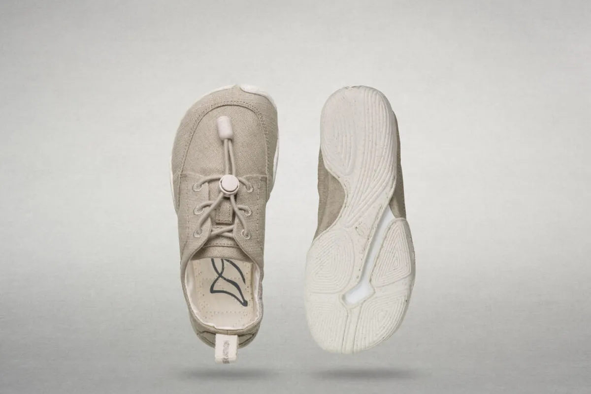 Natur pur: Das Obermaterial des Modells Arun besteht aus einem ungefärbten Leinenstoff in robuster Canvas-Webung. Das Obermaterial ist in Zusammenarbeit mit Wildling Partner VirgoCoop entstanden. VirgoCoop ist eine Genossenschaft mit Sitz in Frankreich, die sich für den Aufbau ökologischer-sozialer Textillieferketten von der Faser bis zum Stoff einsetzt.