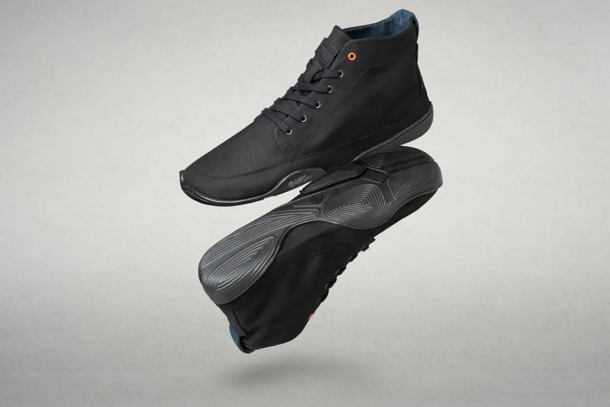Das Obermaterial stammt aus einer deutschen Weberei. Der Stoff wird eigentlich für traditionelle Handwerkskleidung hergestellt, beim Modell Atmo profitieren wir davon, dass dieses Material besonders anschmiegsam und trotzdem langlebig und robust ist.