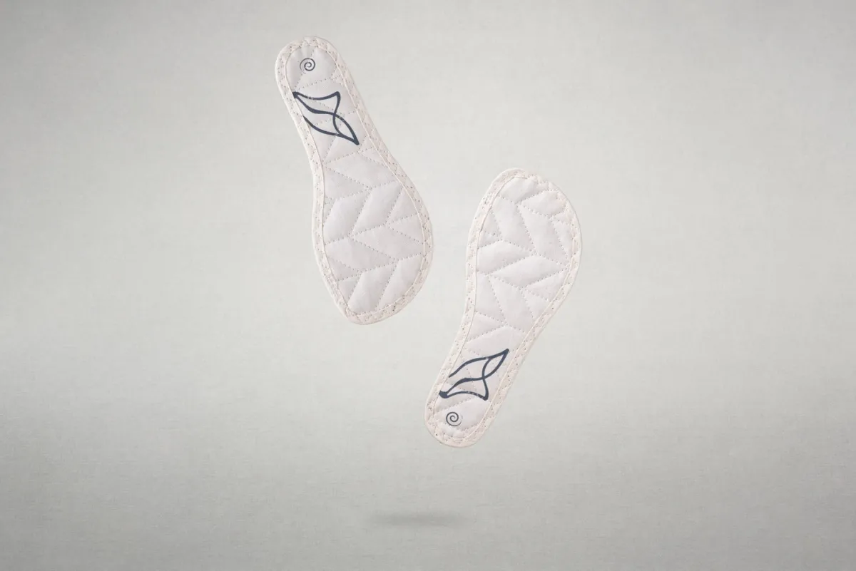 Hanfy pure verzichtet auf eine Membran wodurch sie mit weitaus weniger Kunstfaser zurecht kommt. Sie ist von unten mit Latex beschichtet, sodass sie kaum verrutscht und besonders flexibel unsere Fußbewegungen mitmacht.