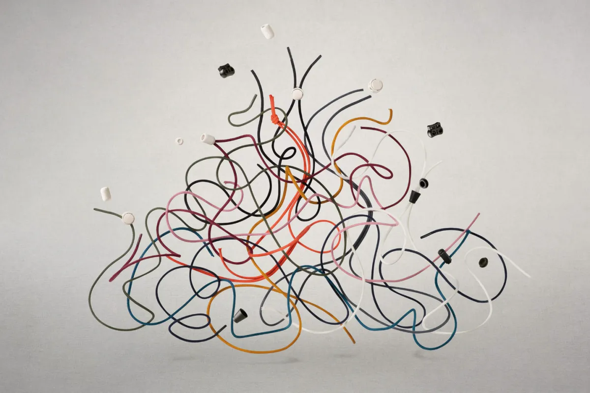 Alternativ kannst du die Elastiksenkel auch umgekehrt einziehen und verknoten ohne Endclips zu nutzen.