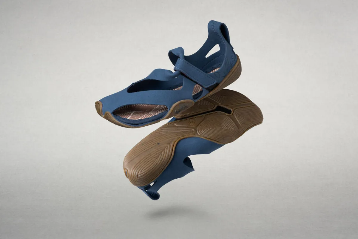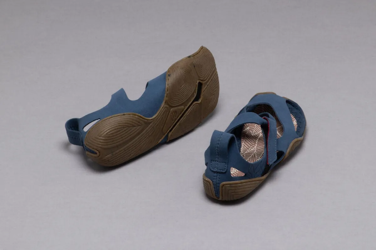 Das Obermaterial der Sandale besteht aus robuster Mikrofaser, die den Fuß schützt und ihm gleichzeitig so viel Bewegungsfreiheit wie möglich einräumt. Das Design setzt auf eine filigrane Passform und weniger Einzelteile. Dank des integrierten Fersenloops kommt die Sandale mit möglichst wenigen Nähten aus. Das ist ressourcenschonend und trägt zur Strapazierfähigkeit des Leichtgewichts bei.