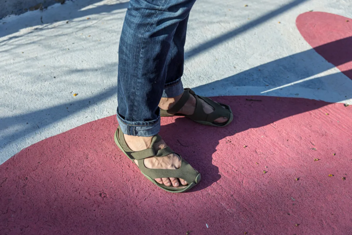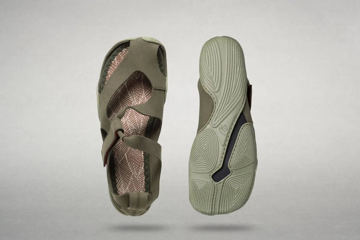 Dass die Sandale bei so wenig Material gleichzeitig einen sehr guten Halt bietet, verdanken wir dem sogenannten Windlass-Mechanismus. Dieser kann mit Hilfe des Riemens über dem großen Zeh optimal wirken und sorgt dafür, dass die Sohle stets am Fuß anliegt.