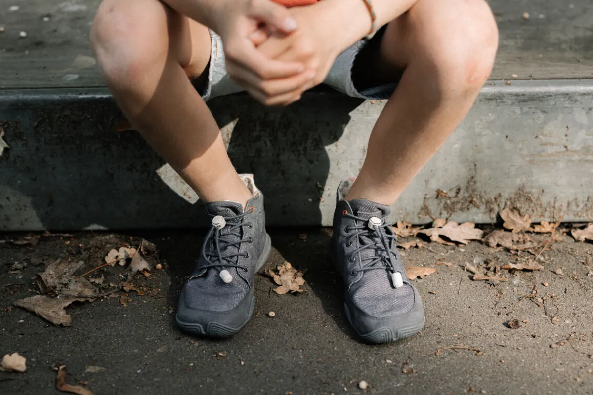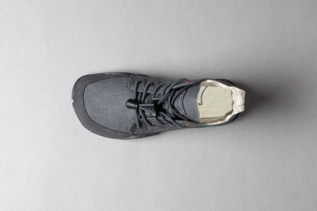Arni ist besonders wasserabweisend, abriebfest und robust. Das grau-blaue Obermaterial besteht zu 100 % aus recycelter Baumwolle im Denim Look.