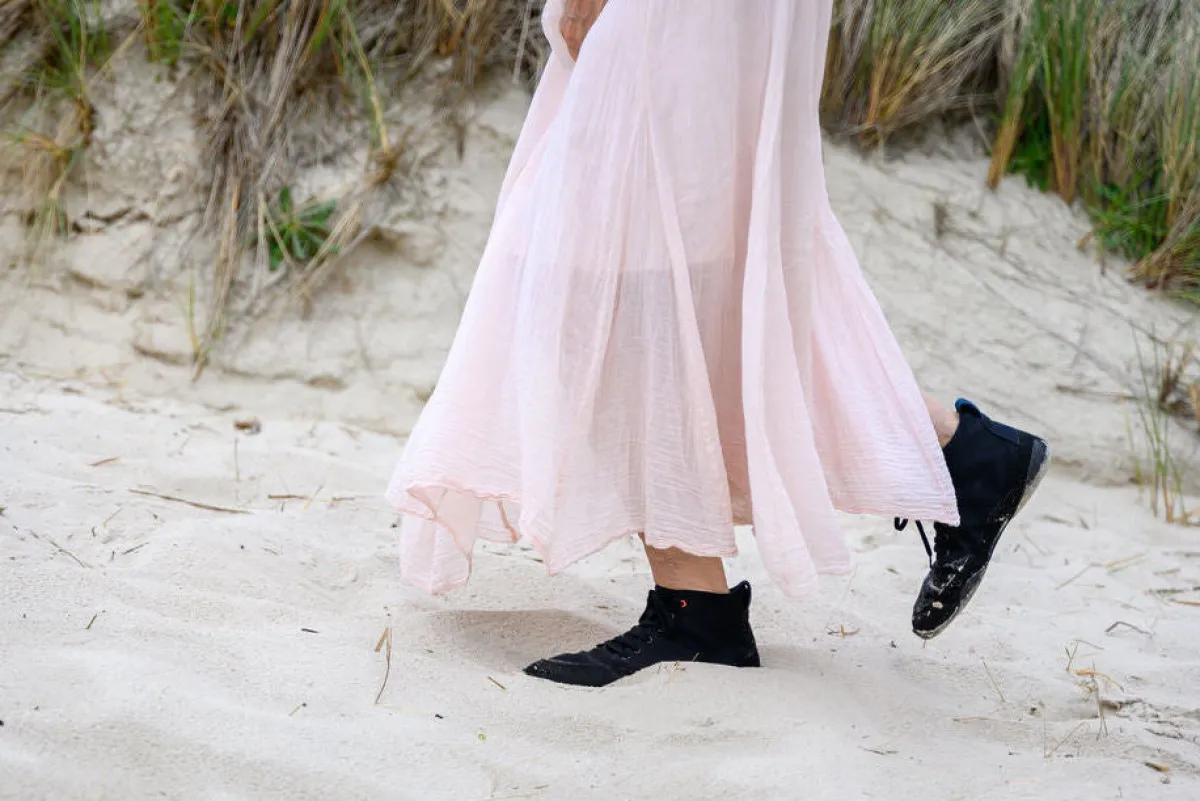 Das Obermaterial stammt aus einer deutschen Weberei. Der Stoff wird eigentlich für traditionelle Handwerkskleidung hergestellt, beim Modell Atmo profitieren wir davon, dass dieses Material besonders anschmiegsam und trotzdem langlebig und robust ist.