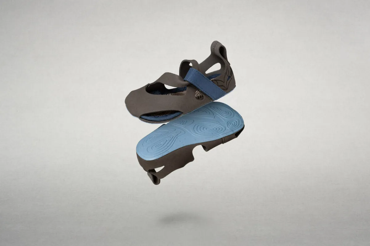 Das Obermaterial der Sandale besteht aus robuster Mikrofaser, die den Fuß schützt und ihm gleichzeitig so viel Bewegungsfreiheit wie möglich einräumt. Das Design setzt auf eine filigrane Passform und weniger Einzelteile. Dank des integrierten Fersenloops kommt die Sandale mit möglichst wenigen Nähten aus. Das ist ressourcenschonend und trägt zur Strapazierfähigkeit des Leichtgewichts bei.